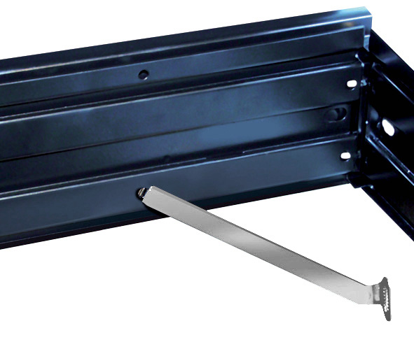 príchyt slúži pre zpevnenie čela vysokéj skriňovej zásuvky, alebo skriňového závesného registru zásuvky.