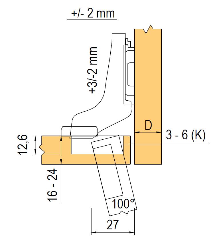 Záves s uhlom otvárania 100°, miska Expando. Možno kombinovať s tlmičom dorazu BLUMOTION k naklapnutiu na ramienko závesu 973A0700 - 12386. základné podložky: ostatné viď. katalóg Blum skrutka 173L6100 - 12306, euro 173L8100 - 12318, štelovanie excentrom 173H7100 - 12340, expando 174E6100.01 - 12302.