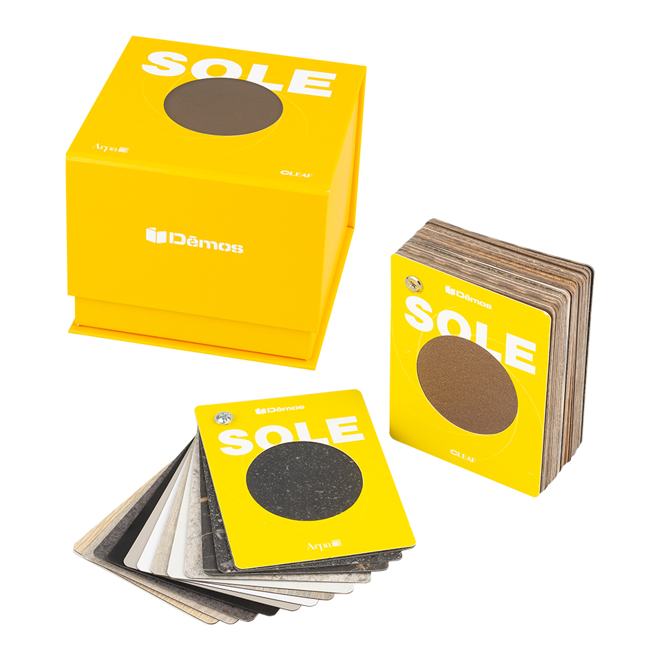 SOLE kolekcia krabička obsahuje 2 vzorkovníky - vejáre. 1 ks Cleaf - 35 dekorov 1 ks Arpa (pracovné dosky) - 12 dekorov