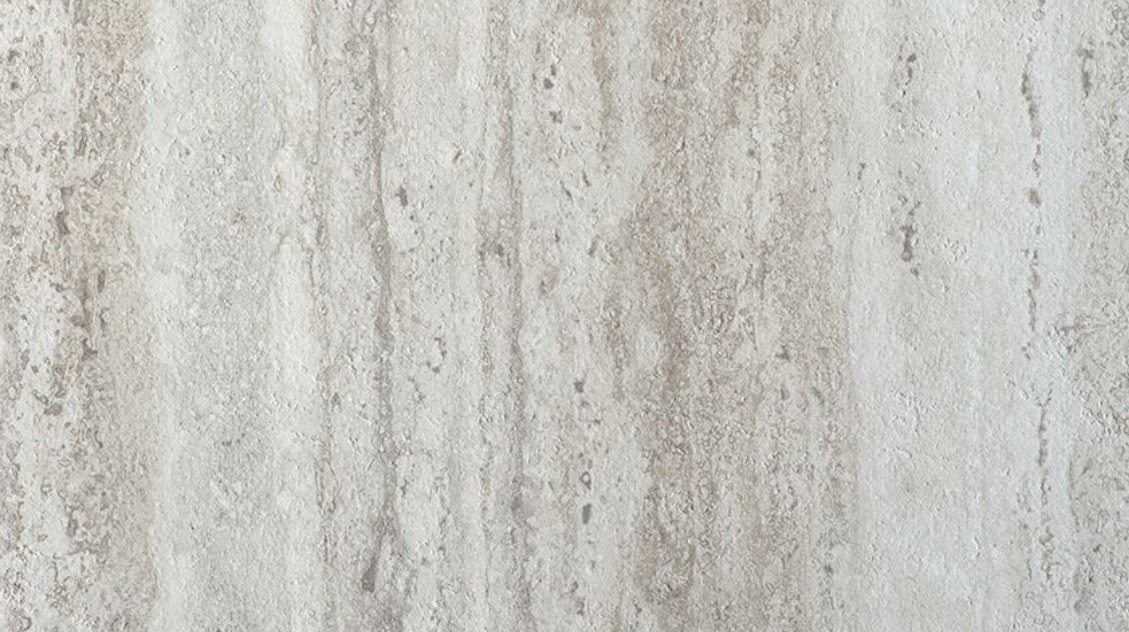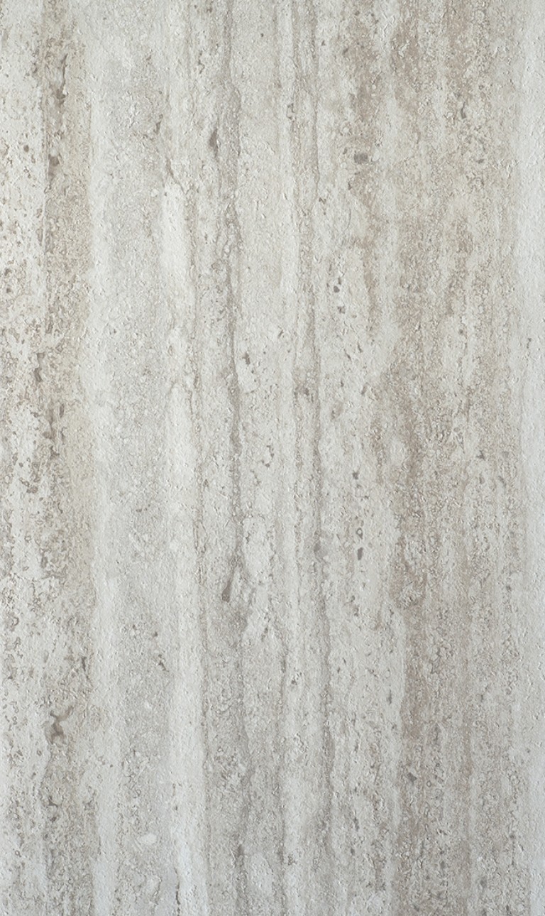 Tento dekor pripomína jemne opracovaný travertín v svetlom béžovom odtieni s decentným kamenným nádychom. Pôsobí čisto a prirodzene, takže krásne funguje ako veľkoplošný povrch.
