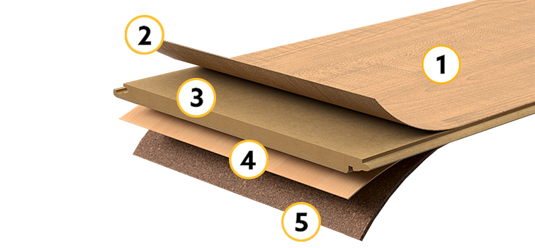- HDF doska zabezpečujúca odolnosť voči ťažkým predmetom alebo ihlovým podpätkom