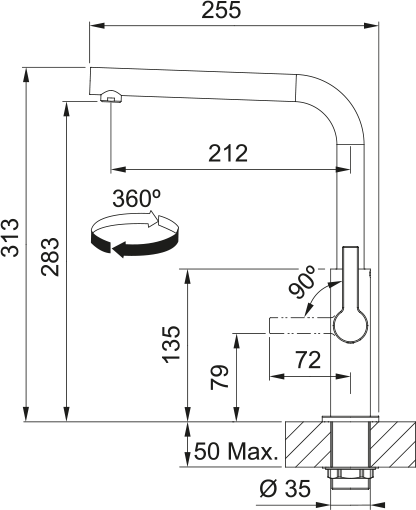 FRANKE Batéria FS 2841.901 MARIS SLIM matná čierna, bez sprchy