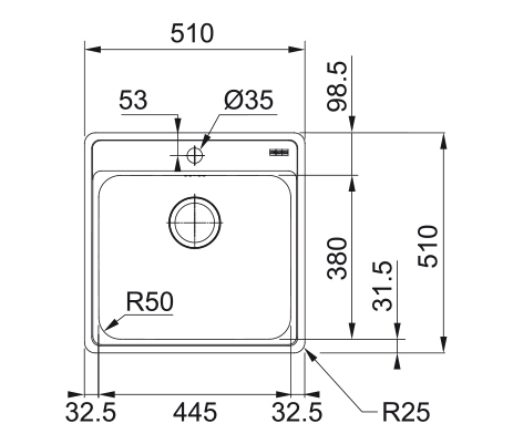 FRANKE Drez BCX 610-51 510x510mm nehrdz. Oceľ