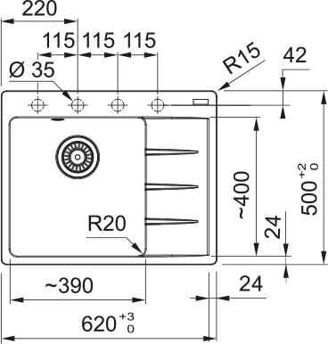 FRANKE Drez CNG 611-62 TL/2 620 x 500 mm, pieskový melír