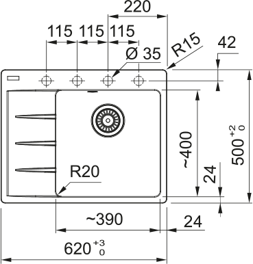 FRANKE Drez CNG 611-62 TL/7 620 x 500 mm, sahara