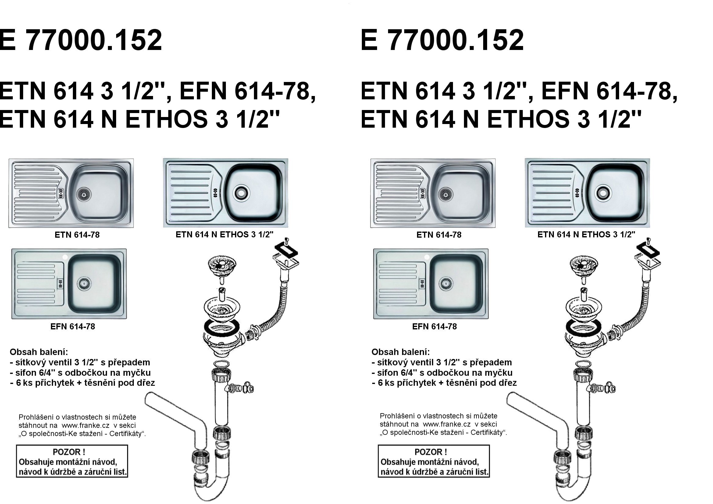 FRANKE Drez ETN 614 N Ethos 3 1/2 780x435mm nehrdzavejúca oceľ