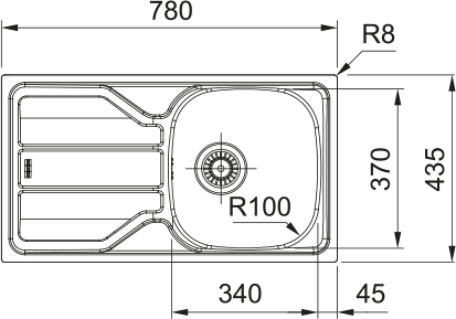 FRANKE Drez FLN 611-78/44 780 x 435 mm nerezová oceľ Cena zahŕňa: sieťkový ventil 3 1/2“ s prepadom. Priestorovo úsporný sifón 6/4“ s kohútikom pre umývačku riadu.