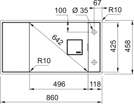 Vrták pre frézovanie otvoru pre batériu do granitových drezov nie je súčasťou balenia drezu .Dá sa zakúpiť pod kódom 346147. Slúži iba pre vŕtanie predfrézovaných otvorov. Priemer 35 mm.