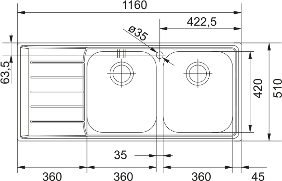 FRANKE Drez NEX 621/7L 1160 x 510mm nerez odkvap vľavo