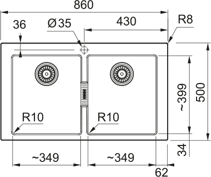 FRANKE Drez S2D 620-86 860 x 500mm šedá