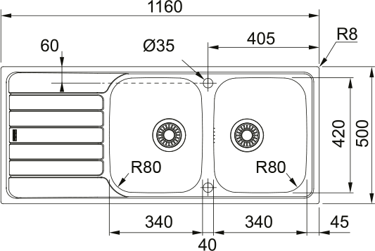 FRANKE Drez SKX 621 1160x500mm nehrdzavejúca oceľ