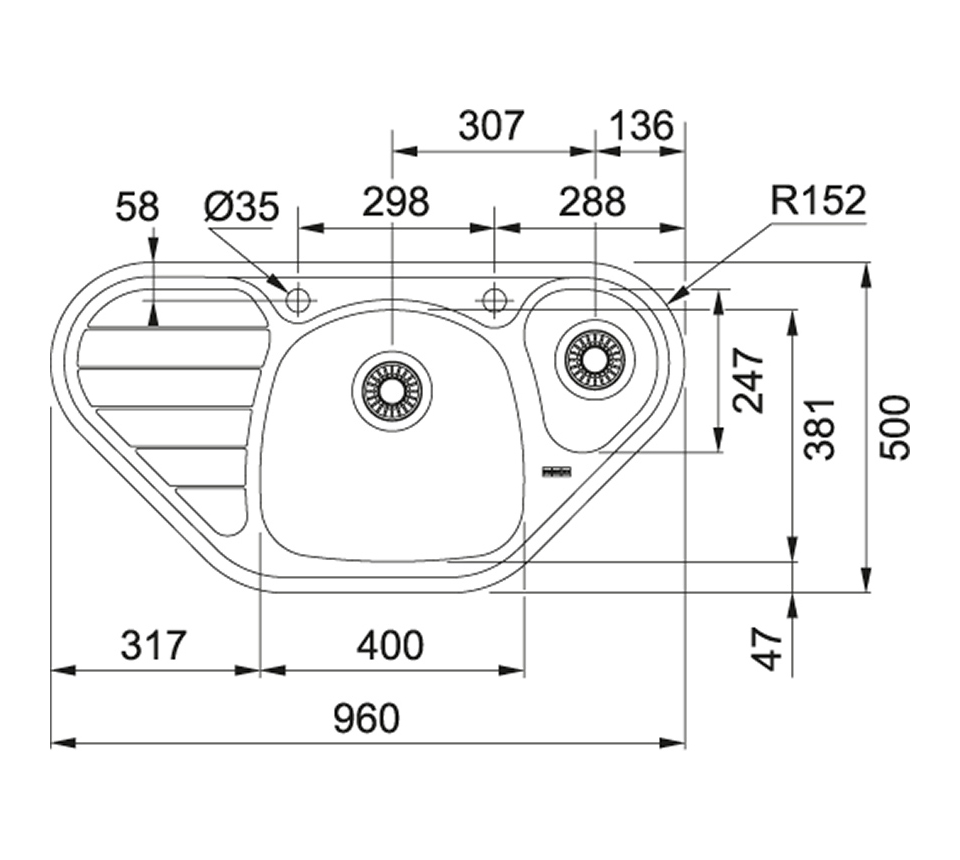 FRANKE Drez SKX 651 E 960x500mm rohový nehrdzavejúca oceľ