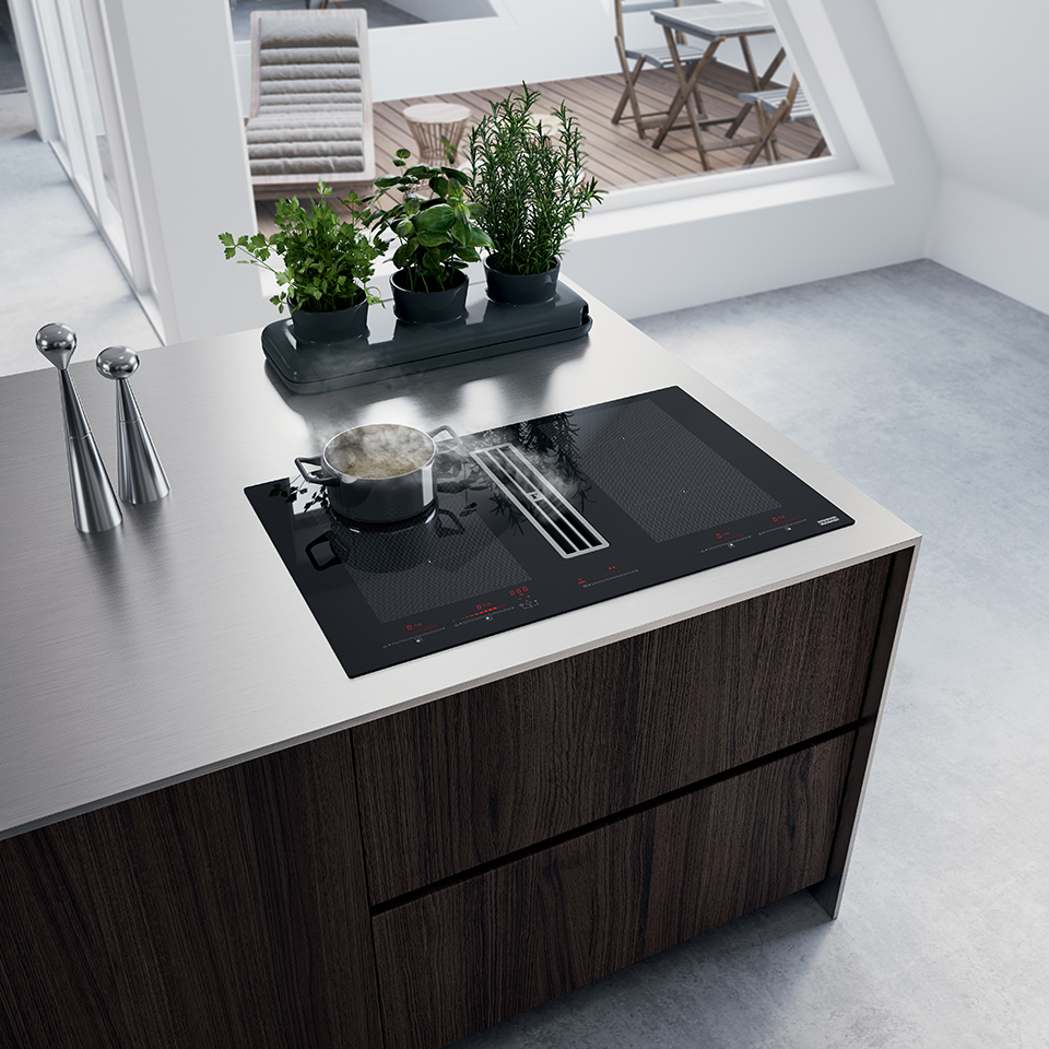 FRANKE Indukčná doska s odsávačom pár FMA 8391 HI čierne sklo/biela grafika