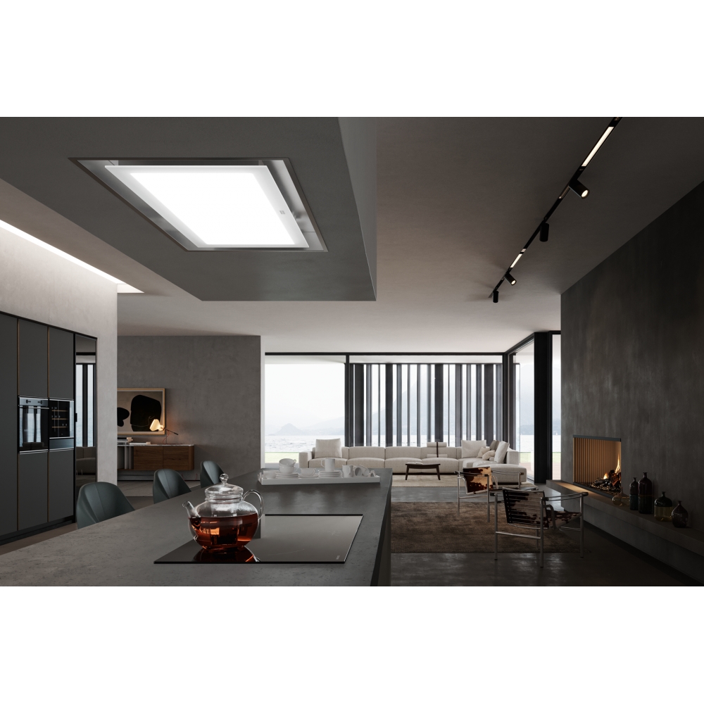 Vstavný stropný odsáívač pár Mythos Full Glass. Prevedenie biele sklo, RAL 9010 v kombinácii s RAL 7042, nerezový rámik. Energetická trieda A. Senzorové ovládanie. Štrbinové odsávánie. 3 Stupne výkonu.2 × Intenzivny stupeň. Dobeh. Wi-Fi, Bluetooth. Funkce trvalého odvetrávánia. Ukazateľ nasýtenia filtra. Poznámka: Cena bez recyklačného príspevku. 350.0679.886