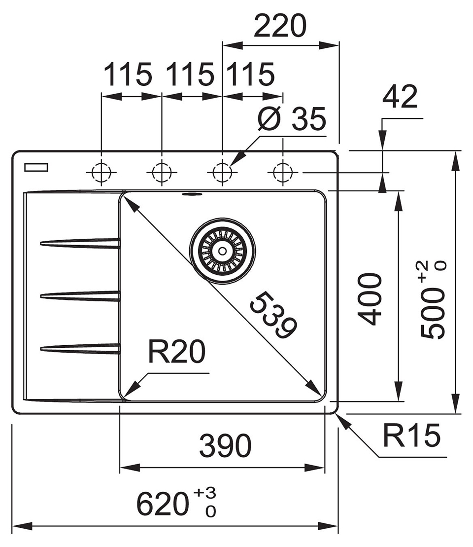 Franke set G223MČ (drez CNG 611-62 TL/7 Matná čierna + batéria FC 3055.901 ORBIT Matná čierna)