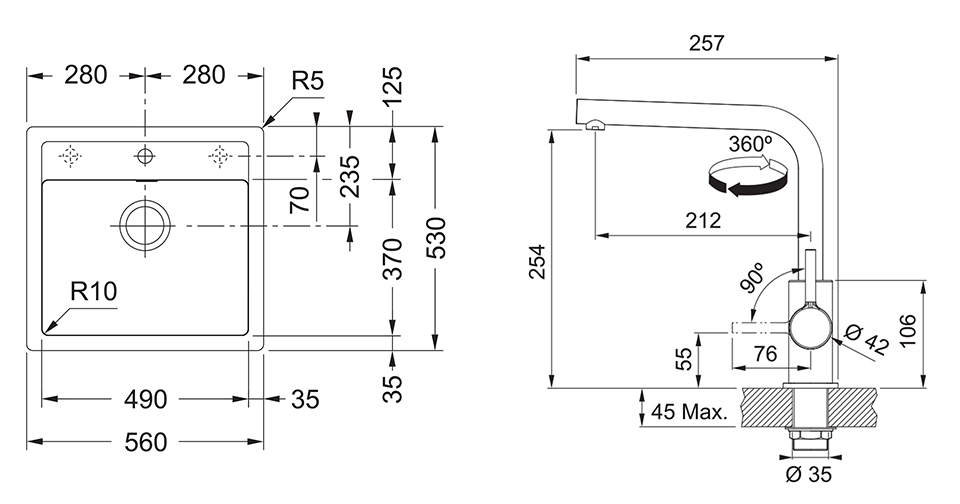 | Inštalácia drezu | Montáž horná |