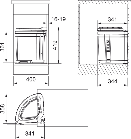 Min. montážny priestor: 360 × 345 × 420 mm