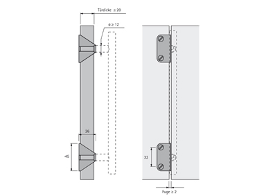 Pre úchytky na skladané dvere. Možno použiť pre úchytky na dvierka hrúbky max. 20 mm a s dosedaciou plochou úchytky väčšou ako 12 mm. Povrchová úprava: nikel mat.
