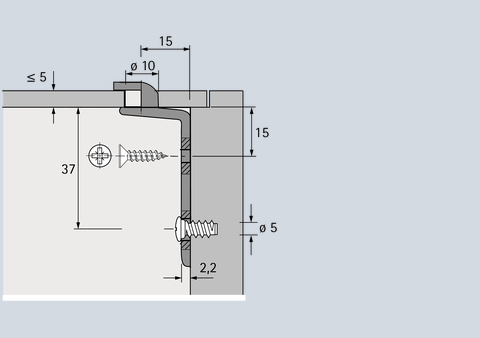 dá sa montovať do rady otvorov priemer 5 mm. Kovanie priťahuje chrbty k boku korpusu. poniklovaný zinkový odliatok.