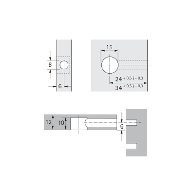 Excentrické spojovacie kovanie Rastex 15. Pre hrúbku dielca 12 mm. Bez osadenia, bez povrchovej úpravy. Zinkový odliatok