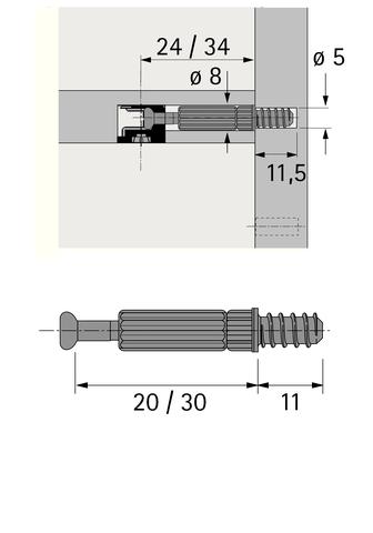 HETTICH 20058 Kolík Twister DU 232, k naskrutkovaniu, 30 mm, čierna