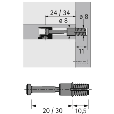 Rychlomontážný kolík pre Rastex 15. Rozperné púzdra pre priemer 8 mm. Upinací rozmer 20 mm. Ocel/plast modrý. Táto položka je určena len pre spojovacie kovanie Rastex 15 z Hettichu!!!
