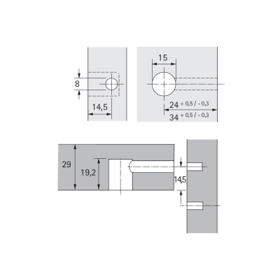 Zobraziť všetky prevádzkyExcentrické spojovacie kovanie Rastex 15. Pre hrúbku dielca 29 mm. S osadením. Zinkový odliatok