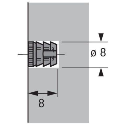 Závit M4, priemer vŕtania 8 mm, hĺbka vŕtania 8 mm.