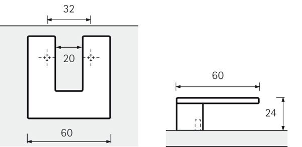 Úchytka VIGILIA dĺžka 60 mm, rozteč vŕtania 32 mm. Povrchová úprava imitácia nereze.