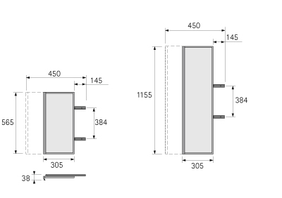 Pre montáž na bok korpusu. Možno doplniť do existujúceho korpusu. Dá sa použiť ako ľavý alebo pravý. Magnetická lišta bráni nechcenému vyklopeniu. Hĺbka výsuvu 450mm. Výška 1155 mm. Rám a uchytná lišta: hliník. Povrchová úprava: strieborná. Sada obsahuje: 1 ks zrkadlo, 1 ks výsuv.