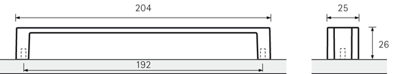 Úchytka Intra, dĺžka 204 mm, rozteč vŕtania 192 mm. Povrchová úprava chróm matný/chróm lesklý