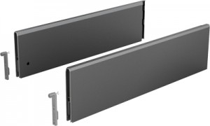 Flexibilná sada pre výšku bokov 94 mm obsahuje: bok ľavý a pravý, 2 príchytky čela s hmoždinkou k zarazeniu, 2 krytky s logom Hettich, spojovací materiál. Povrchová úprava: antracit.