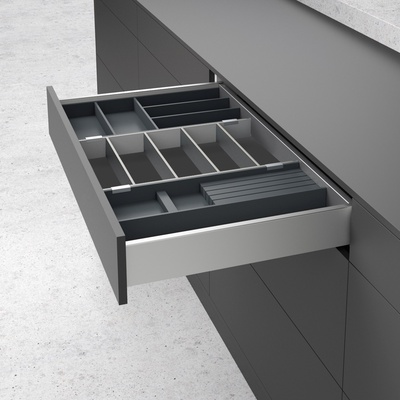 Zobraziť všetky prevádzkyOrgaTray 630 rozdelovník pre systém AvanTech You a ArciTech. Farba strieborná. Pre hĺbku zásuvky 550 mm. Rozmer rozdelovníka š=271, v=43, h=523 mm.