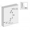 Montážna podložka Novisys s predmontovanými euroskrutkami, treba predvŕtať otvory D5x12 mm. Rozstup otvorov 32 mm, vŕtanie pre (polo)naložený záves 37 mm od predného okraja korpusu (System32). Nastavenie výšky +/- 3 mm pomocou oválnych otvorov. Poniklovaná oceľ.