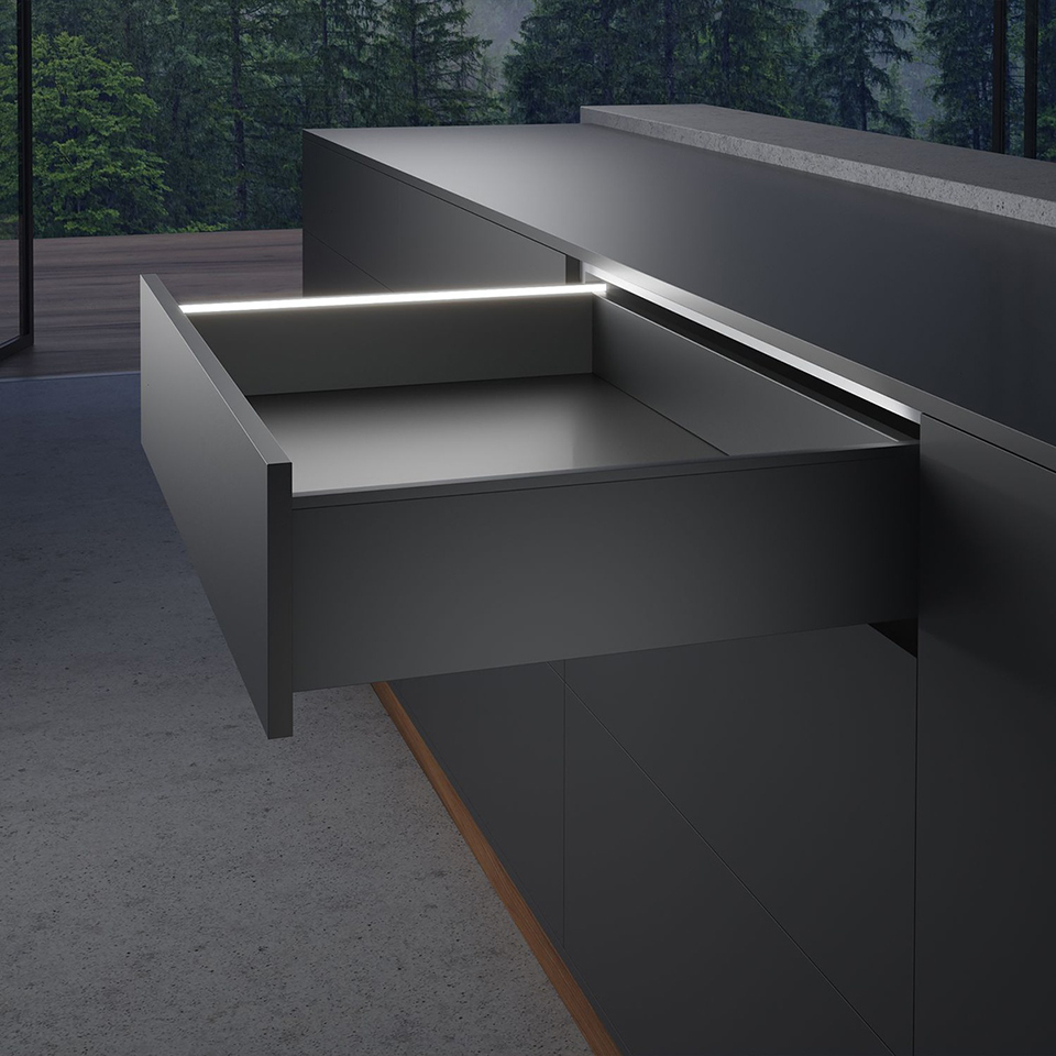 Efektné dekoratívne osvetlenie pre AvanTech YOU, ktoré svieti buď dovnútra zásuvky, alebo do miestnosti. Môže byť dodatočne namontované ako voliteľné príslušenstvo pre systémovú výšku 101/139/187/251 mm. Rozptýlené neutrálne (denné) biele svetlo s farebnou teplotou 4000 K. Kompletná súprava pre jednu zásuvku vrátane dobíjacej batérie a nabíjacieho kábla. Svetlo sa automaticky zapne pri otvorení zásuvky, vypne sa približne 30 sekúnd po otvorení zásuvky alebo okamžite po jej zatvorení.