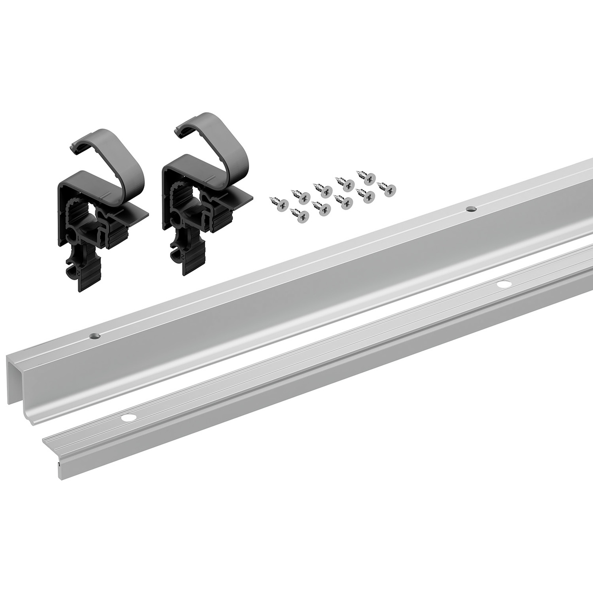 Sada obsahuje jeden nosný a jeden vodiaci profil, s predvrtanými otvormi pre upevnenie, spojovací materiál a montážne pomôcky.Pokiaľ je vzdialenosť otvoru od konca profilu väčšia než 40 mm, doporučuje sa použitie podpery profilu. Materiál: hliník.