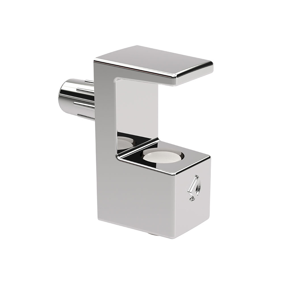 Elegantná policová podpera pre sklenené police 8 mm, s čapom. Jednoduchá montáž aj demontáž. Plast + nikel. Vŕtanie otvoru – 5 mm. Povrchová úprava – chróm.