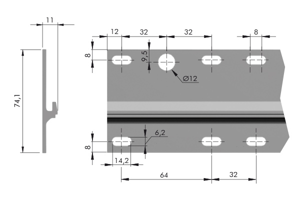 Hliníková závesná lišta pre všetky typy kovaní LIBRA, odporúčaná najmä na montáž spodných skriniek s kovaním H11. Umožňuje použitie uzamykacieho systému závesného kovania LIBRA. Možno ju podľa potreby skrátiť.