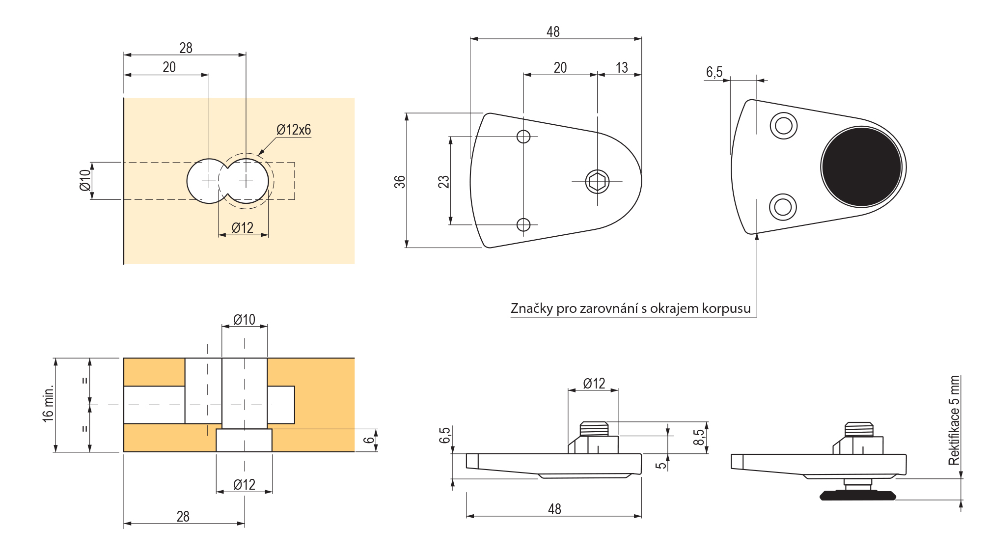 Rektifikačná nožka LH7.28. Veľmi malý rozmer s vysokou nosnosťou a rekticikáciou +5mm pre vyrovnanie nerovností . Kovové telo a plastový klzák . Nosnosť až 150kg na jednu nožku