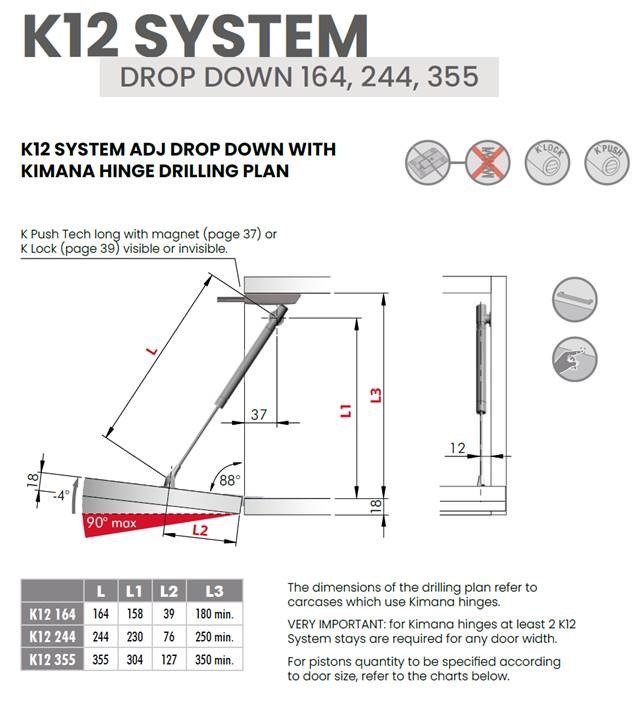 Minimalistický design. Priemer piestov iba 12mm. Doporučujeme v kombinaci s bezpružinovými závesy KIMANA. sa dá tiež vlmi efektne otvárať bezúchytkovo v kombinaci s systémem K-PUSH. V sade úchyt do korupusu a na dvierka do otvoru o Priemeru 15mm a navíc úchyt na dvierka na skrutkuy.