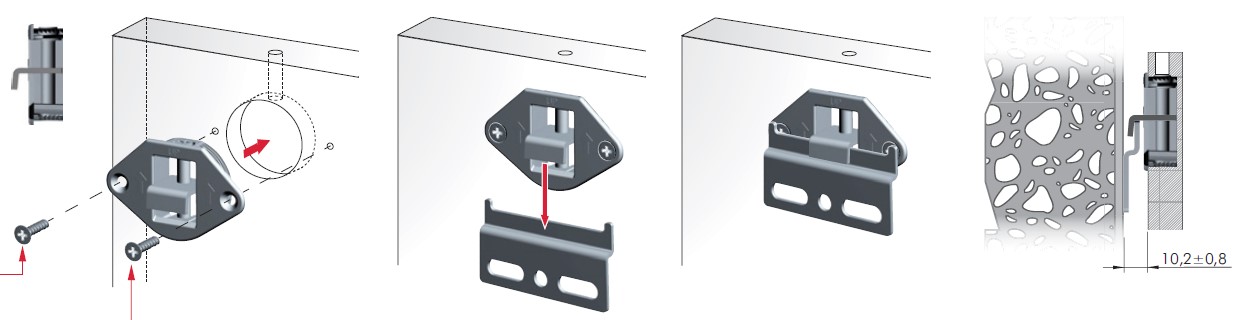 IF závesné rektifikačné kovanie pre doskové materiály zafrézované na lištu