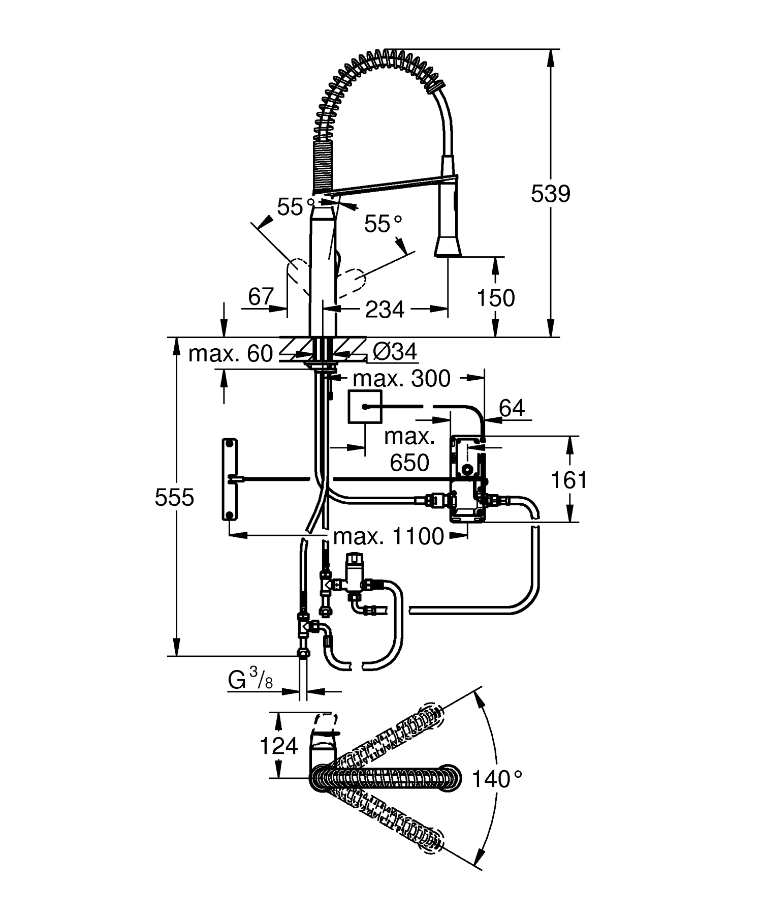 GROHE 31379DC0 páková drezová batéria K7 s profi sprškou, SuperSteel | 410430 | 1 ks | 781,48 EUR |