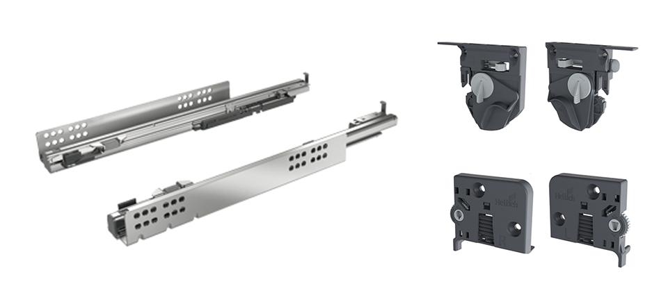 K-HETTICH set Quadro 4D V6 P2O 280mm/30kg pre bočnicu 16mm + súprava spojok