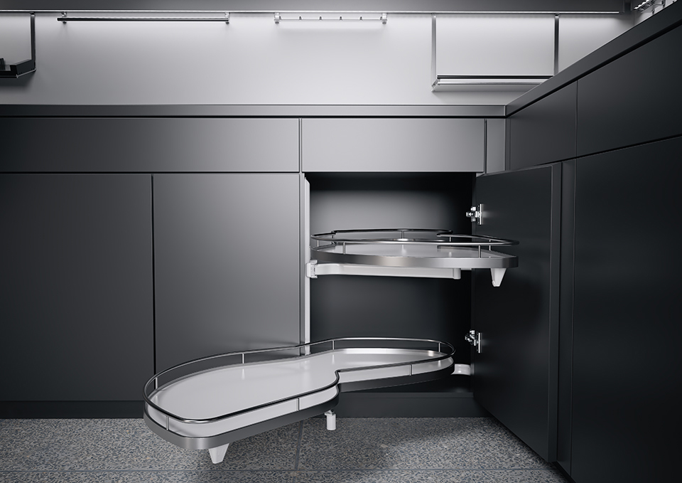 Vďaka špeciálne tvarovanej geometrii políc zvyšuje skutočnú úložnú plochu až o 70 %. Jednoznačná výhoda oproti porovnateľným výsuvným skrinkám. Ak je LeMans II vybavený tlmiacim mechanizmom, ktorý je k dispozícii ako voliteľné príslušenstvo, pohyb políc je takmer nehlučný. Tento optimálny komfort je možné kedykoľvek rýchlo a jednoducho dodatočne vybaviť.