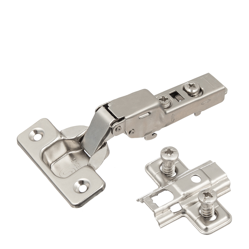 Kompletná sada závesu S3 s montážnou podložkou. Uhol otvorenia 110°, montáž misky na skrutku a excentrické nastavenie hĺbky.
