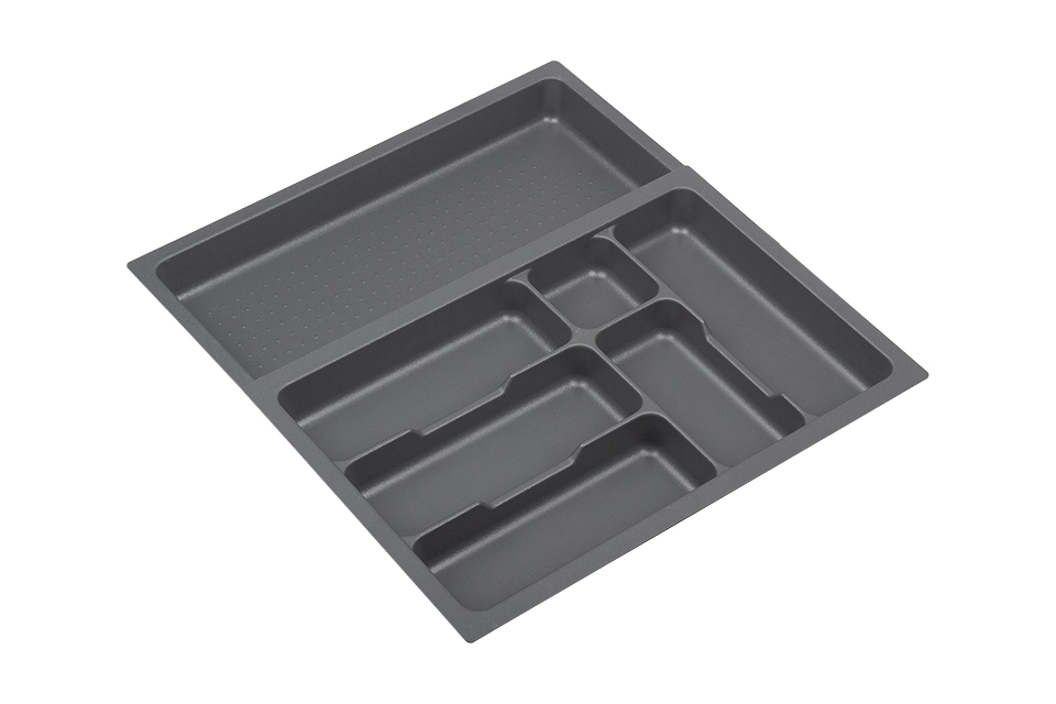 Jeden zásobník, ktorý je možné vďaka výsuvnému dnu prispôsobiť zásuvkám o šírke 400, 500 a 600 mm. Skládá se z dvoch častí: príborníku a výsuvného bočného vkladu. Dodatočný priestor vzniknutý vysunutím pohyblivého prvku umožňuje ukladanie väčších kuchynských doplnkov, ktoré sa nezmestia do štandardných priehradiek.