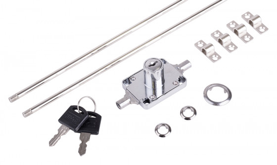 Obsahuje: 1 x zámok, 1 ks rozeta, 4 ks príchytov tyče, 2 ks protikusov do korpusu, 1 x tyč 1200 mm, 1 x tyč 1000 mm