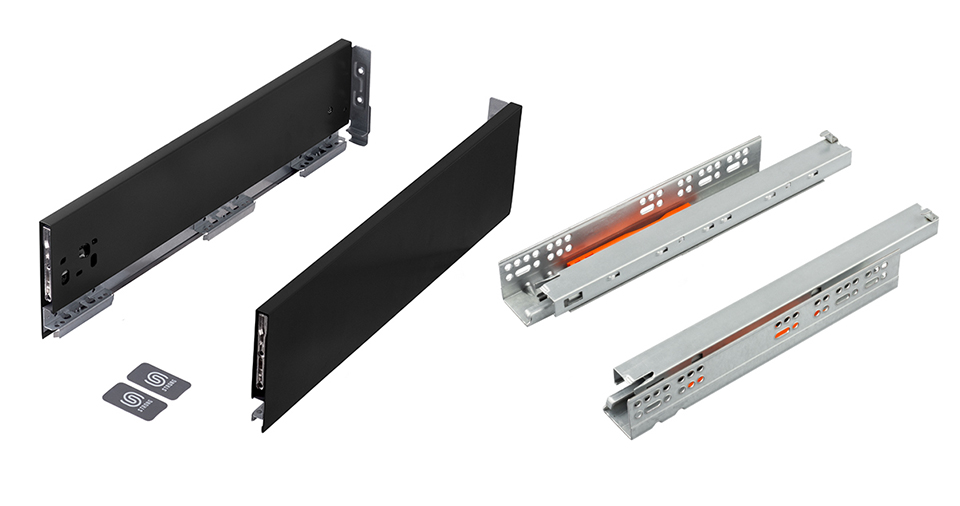 Systémová výška bočnice, menovitá dĺžka výsuvu, typ výsuvu a farba systému – viď názov sortimentu.