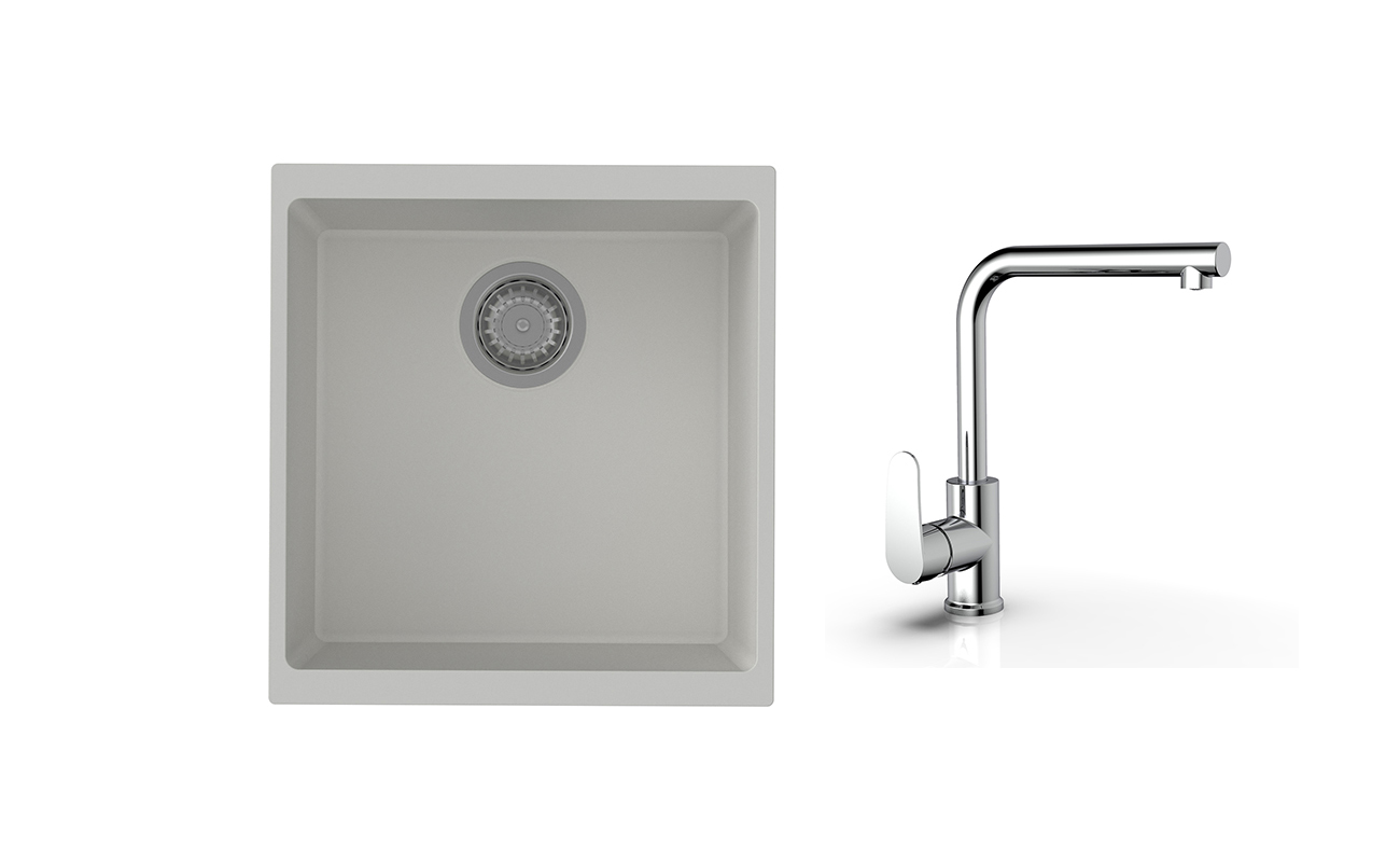 Praktický a cenovo zvýhodnený set granitového drezu a batérie v jednom.