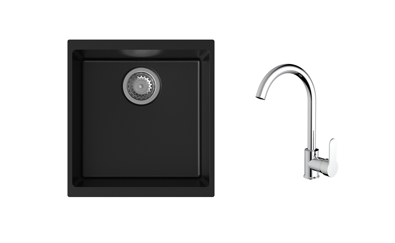Praktický a cenovo zvýhodnený set granitového drezu a batérie v jednom.